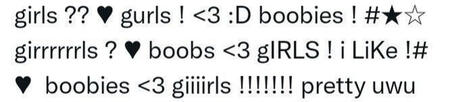 | ur man,support:war,lesbophobia,pedohiles - in general the base,don't want to take the initiative in communication,too much horny |
